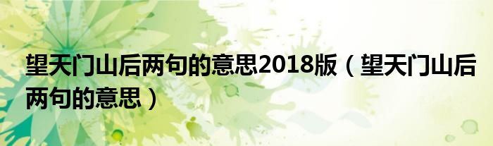 大家好,小晋来为大家解答以下问题,关于望天门山后两句的意思2018版,望天门山后两句的意思很多人还不知道,今天让我们一起来看看吧!