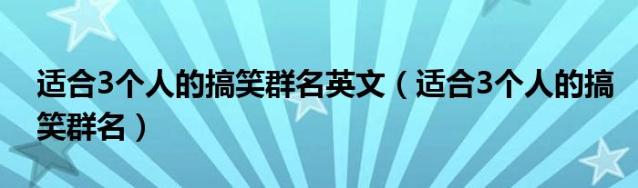 大家好,小晋来为大家解答以下问题,关于适合3个人的搞笑群名英文,适合3个人的搞笑群名很多人还不知道,今天让我们一起来看看吧!