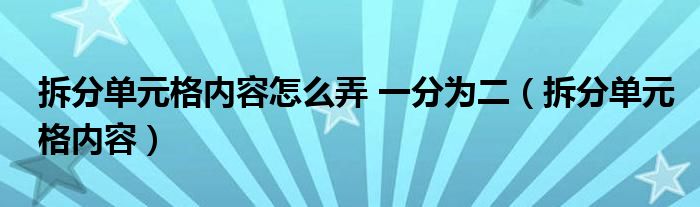 大家好,小晋来为大家解答以下问题,关于拆分单元格内容怎么弄 一分为二,拆分单元格内容很多人还不知道,今天让我们一起来看看吧!