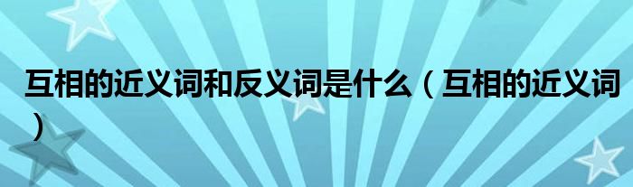 大家好,小晋来为大家解答以下问题,关于互相的近义词和反义词是什么,互相的近义词很多人还不知道,今天让我们一起来看看吧!
