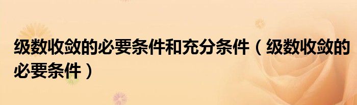 大家好,小晋来为大家解答以下问题,关于级数收敛的必要条件和充分条件,级数收敛的必要条件很多人还不知道,今天让我们一起来看看吧!