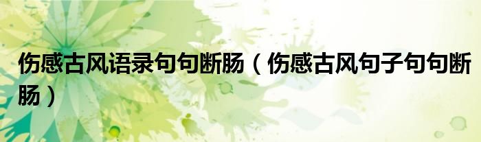 大家好,小晋来为大家解答以下问题,关于伤感古风语录句句断肠,伤感古风句子句句断肠很多人还不知道,今天让我们一起来看看吧!