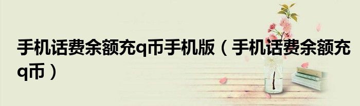 大家好,小晋来为大家解答以下问题,关于手机话费余额充q币手机版,手机话费余额充q币很多人还不知道,今天让我们一起来看看吧!