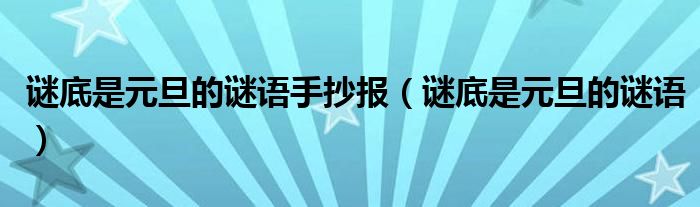 大家好,小晋来为大家解答以下问题,关于谜底是元旦的谜语手抄报,谜底是元旦的谜语很多人还不知道,今天让我们一起来看看吧!