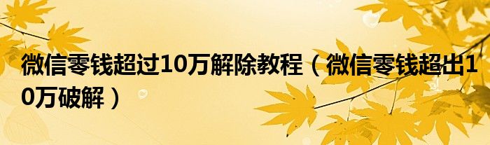 大家好,小晋来为大家解答以下问题,关于微信零钱超过10万解除教程,微信零钱超出10万破解很多人还不知道,今天让我们一起来看看吧!