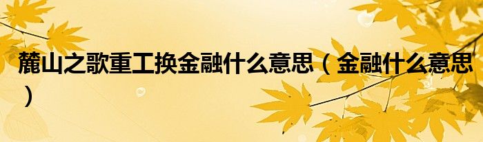 大家好,小晋来为大家解答以下问题,关于麓山之歌重工换金融什么意思,金融什么意思很多人还不知道,今天让我们一起来看看吧!
