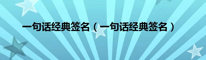 一句话经典签名,一句话经典签名很多人还不知道,乐乐来为大家解答以上问题,现在让我们一起来看看吧!
