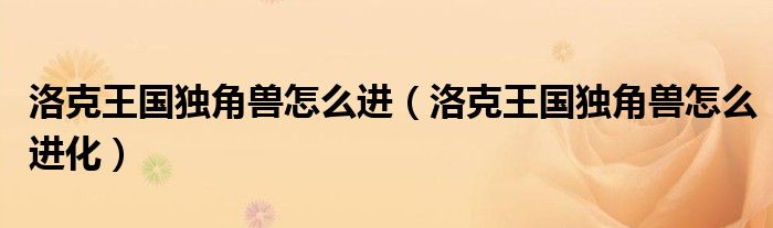 洛克王国独角兽怎么进,洛克王国独角兽怎么进化很多人还不知道,乐乐来为大家解答以上问题,现在让我们一起来看看吧!