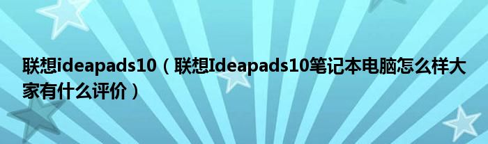 联想ideapads10(联想Ideapads10笔记本电脑怎么样大家有什么评价)