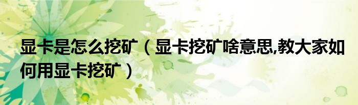 显卡是怎么挖矿(显卡挖矿啥意思,教大家如何用显卡挖矿)