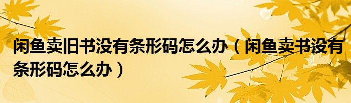 大家好,跳跳为你解答以上问题。闲鱼卖旧书没有条形码怎么办,闲鱼卖书没有条形码怎么办这个问题很多人还不知道,现在让我们一起来看看吧!