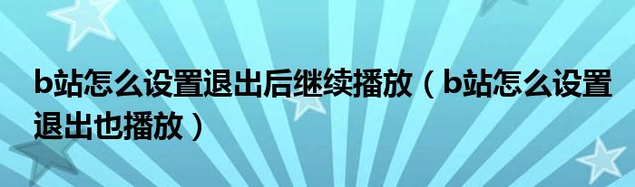 大家好,跳跳为你解答以上问题。b站怎么设置退出后继续播放,b站怎么设置退出也播放这个问题很多人还不知道,现在让我们一起来看看吧!