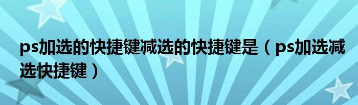 大家好,跳跳为你解答以上问题。ps加选的快捷键减选的快捷键是,ps加选减选快捷键这个问题很多人还不知道,现在让我们一起来看看吧!