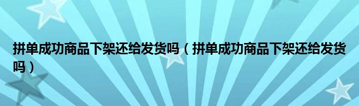 大家好,跳跳为你解答以上问题。拼单成功商品下架还给发货吗,拼单成功商品下架还给发货吗这个问题很多人还不知道,现在让我们一起来看看吧!