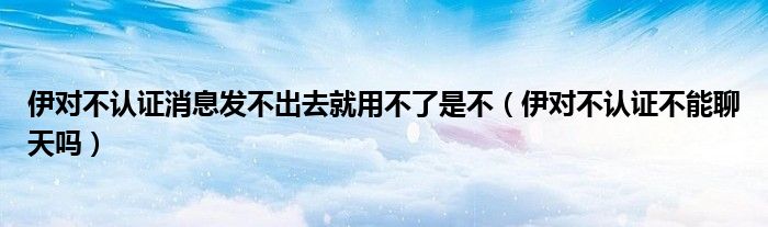 大家好,跳跳为你解答以上问题。伊对不认证消息发不出去就用不了是不,伊对不认证不能聊天吗这个问题很多人还不知道,现在让我们一起来看看吧!