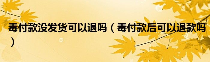 大家好,跳跳为你解答以上问题。毒付款没发货可以退吗,毒付款后可以退款吗这个问题很多人还不知道,现在让我们一起来看看吧!