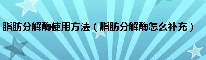 大家好,linda来为大家解答以上的问题。脂肪分解酶使用方法,脂肪分解酶怎么补充很多人还不知道,现在让我们一起来看看吧!
