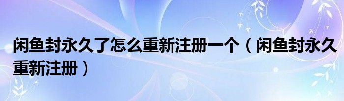 大家好,跳跳为你解答以上问题。闲鱼封永久了怎么重新注册一个,闲鱼封永久重新注册这个问题很多人还不知道,现在让我们一起来看看吧!