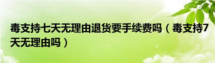 大家好,跳跳为你解答以上问题。毒支持七天无理由退货要手续费吗,毒支持7天无理由吗这个问题很多人还不知道,现在让我们一起来看看吧!