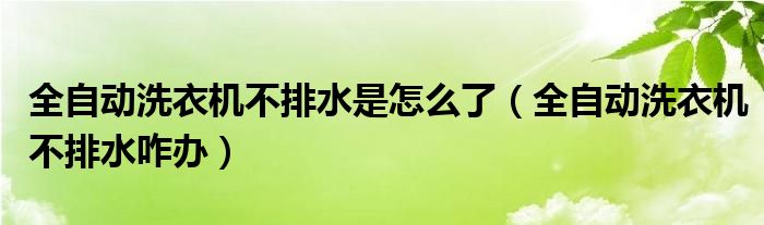 大家好,小叶为你解答以上问题。全自动洗衣机不排水是怎么了,全自动洗衣机不排水咋办这个问题很多人还不知道,现在让我们一起来看看吧!