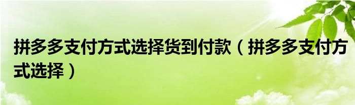 大家好,跳跳为你解答以上问题。拼多多支付方式选择货到付款,拼多多支付方式选择这个问题很多人还不知道,现在让我们一起来看看吧!