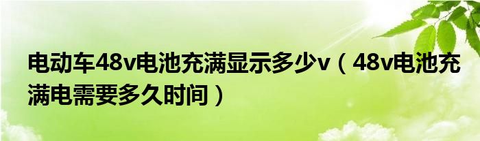 大家好,小叶为你解答以上问题。电动车48v电池充满显示多少v,48v电池充满电需要多久时间这个问题很多人还不知道,现在让我们一起来看看吧!