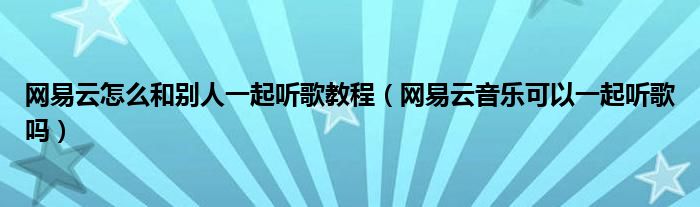 大家好,跳跳为你解答以上问题。网易云怎么和别人一起听歌教程,网易云音乐可以一起听歌吗这个问题很多人还不知道,现在让我们一起来看看吧!