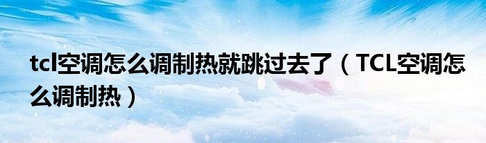 大家好,小叶为你解答以上问题。tcl空调怎么调制热就跳过去了,TCL空调怎么调制热这个问题很多人还不知道,现在让我们一起来看看吧!