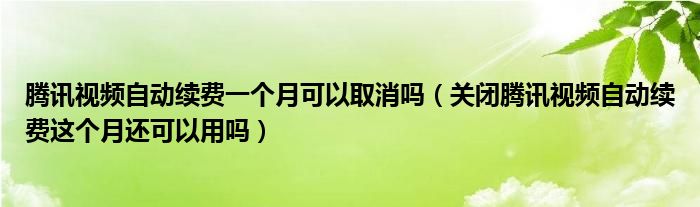 大家好,跳跳为你解答以上问题。腾讯视频自动续费一个月可以取消吗,关闭腾讯视频自动续费这个月还可以用吗这个问题很多人还不知道,现在让我们一起来看看吧!
