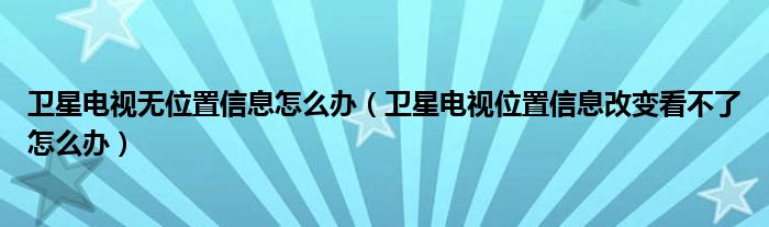 大家好,小叶为你解答以上问题。卫星电视无位置信息怎么办,卫星电视位置信息改变看不了怎么办这个问题很多人还不知道,现在让我们一起来看看吧!