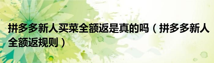 大家好,跳跳为你解答以上问题。拼多多新人买菜全额返是真的吗,拼多多新人全额返规则这个问题很多人还不知道,现在让我们一起来看看吧!