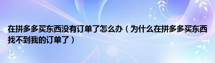 大家好,跳跳为你解答以上问题。在拼多多买东西没有订单了怎么办,为什么在拼多多买东西找不到我的订单了这个问题很多人还不知道,现在让我们一起来看看吧!