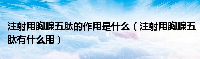 大家好,linda来为大家解答以上的问题。注射用胸腺五肽的作用是什么,注射用胸腺五肽有什么用很多人还不知道,现在让我们一起来看看吧!