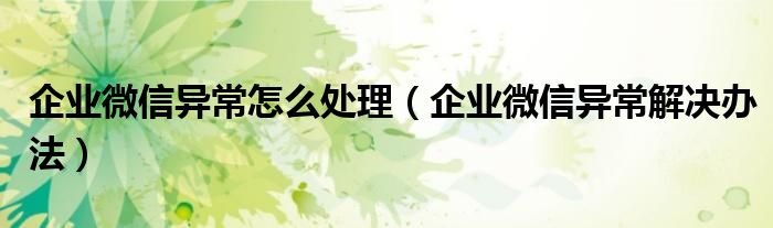 大家好,跳跳为你解答以上问题。企业微信异常怎么处理,企业微信异常解决办法这个问题很多人还不知道,现在让我们一起来看看吧!