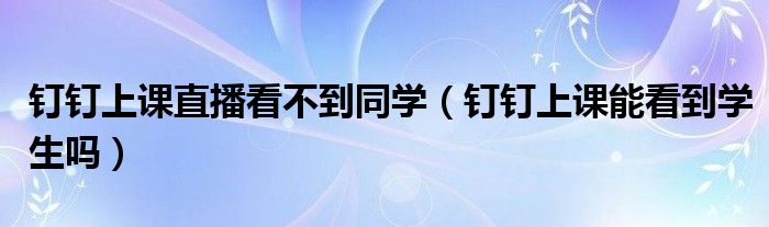 大家好,跳跳为你解答以上问题。钉钉上课直播看不到同学,钉钉上课能看到学生吗这个问题很多人还不知道,现在让我们一起来看看吧!