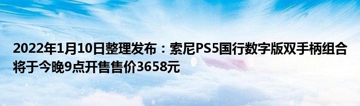 今日,从PlayStation天猫旗舰店获悉,索尼PS5国行数字版双手柄组合将于今晚9点开售,售价3658元。