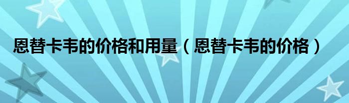 大家好,linda来为大家解答以上的问题。恩替卡韦的价格和用量,恩替卡韦的价格很多人还不知道,现在让我们一起来看看吧!