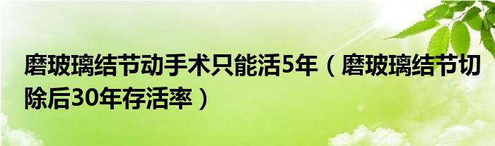 大家好,linda来为大家解答以上的问题。磨玻璃结节动手术只能活5年,磨玻璃结节切除后30年存活率很多人还不知道,现在让我们一起来看看吧!