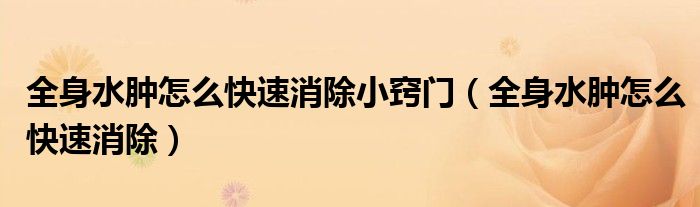 全身水肿怎么快速消除小窍门(全身水肿怎么快速消除)