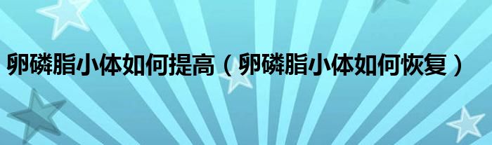 卵磷脂小体如何提高(卵磷脂小体如何恢复)