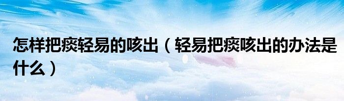 怎样把痰轻易的咳出(轻易把痰咳出的办法是什么)