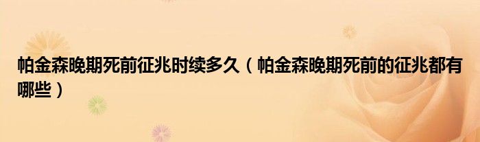 大家好,linda来为大家解答以上的问题。帕金森晚期死前征兆时续多久,帕金森晚期死前的征兆都有哪些很多人还不知道,现在让我们一起来看看吧!