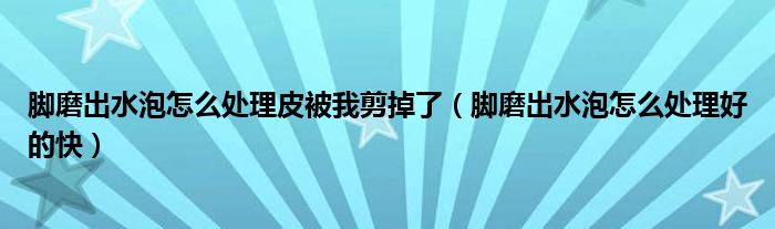 大家好,linda来为大家解答以上的问题。脚磨出水泡怎么处理皮被我剪掉了,脚磨出水泡怎么处理好的快很多人还不知道,现在让我们一起来看看吧!