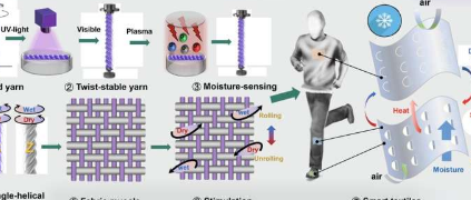 “我们正在尝试通过利用纺织品的层次结构设计来设计灵活和多功能的执行器,从微观尺度(例如,分子链和聚集结构)到宏观尺度(例如,纤维形态和纺织品结构),”孙丰新,其中一位进行这项研究的研究人员告诉 Tech Xplore。“通过环保且易于制造的制造工艺实现具有独立式和单螺旋结构的基于纱线的人造肌肉仍然具有挑战性。”