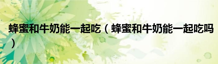 1、蜂蜜和牛奶可以一起吃。