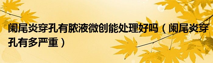 大家好,linda来为大家解答以上的问题。阑尾炎穿孔有脓液微创能处理好吗,阑尾炎穿孔有多严重很多人还不知道,现在让我们一起来看看吧!