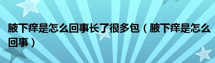 大家好,linda来为大家解答以上的问题。腋下痒是怎么回事长了很多包,腋下痒是怎么回事很多人还不知道,现在让我们一起来看看吧!