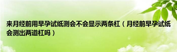 大家好,linda来为大家解答以上的问题。来月经前用早孕试纸测会不会显示两条杠,月经前早孕试纸会测出两道杠吗很多人还不知道,现在让我们一起来看看吧!