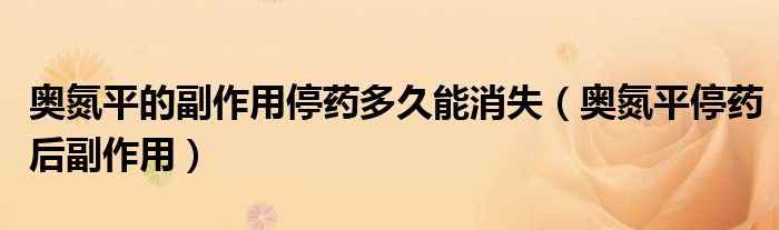 大家好,linda来为大家解答以上的问题。奥氮平的副作用停药多久能消失,奥氮平停药后副作用很多人还不知道,现在让我们一起来看看吧!