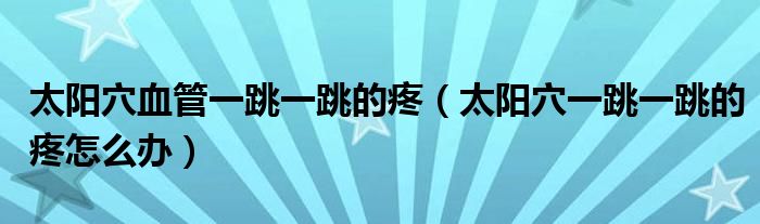 大家好,linda来为大家解答以上的问题。太阳穴血管一跳一跳的疼,太阳穴一跳一跳的疼怎么办很多人还不知道,现在让我们一起来看看吧!